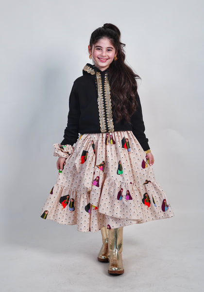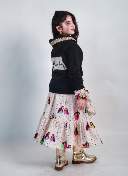 Unique Skirt and Hoodie inspired from Bukhnag style with an option to add your daughter's name on the back of the Hoodie.